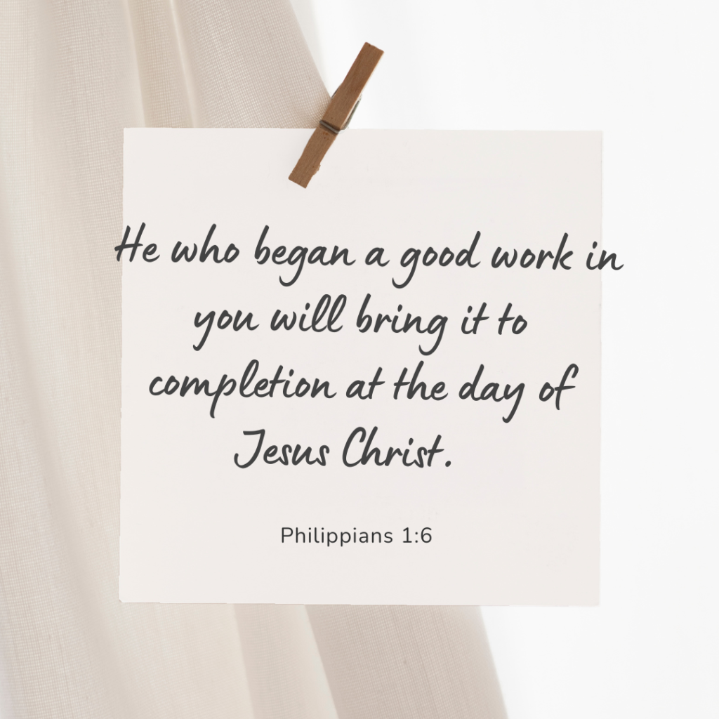 He who began a good work in you will bring it to completion at the day of Jesus Christ.
